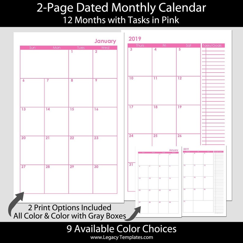 2019 12 Month 2 Page Pink Calendar Jr Size 5 5 X 8 5