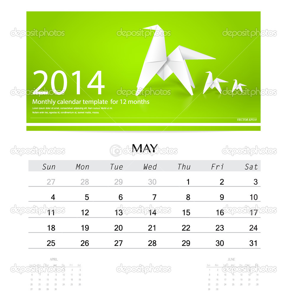 2014 Calendar Monthly Calendar Template For May Origami