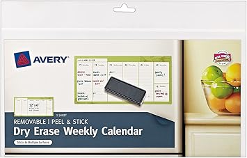 Avery Dry Erase Weekly Calendar Removable Peel And Stick 6 X 12 Inches 1 Sheet 24383