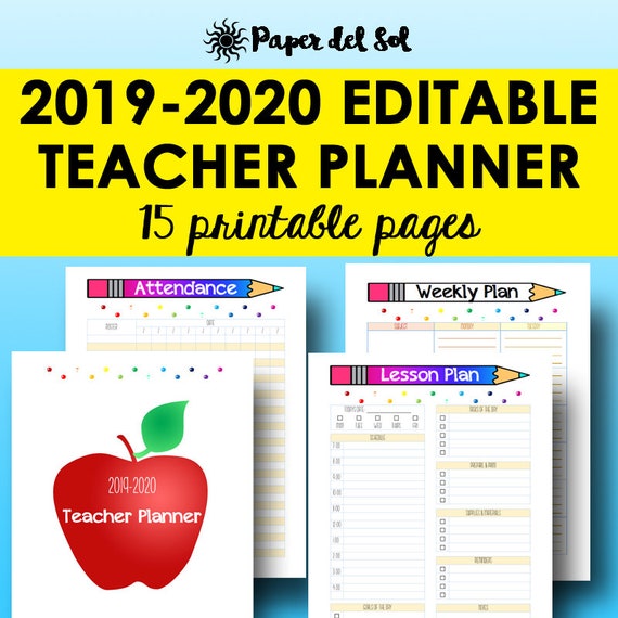 Teacher Planner 2019 2020 Editable Lesson Planner Printable Academic Planning Teacher Planners Editable Homeschool Plan Instant Download