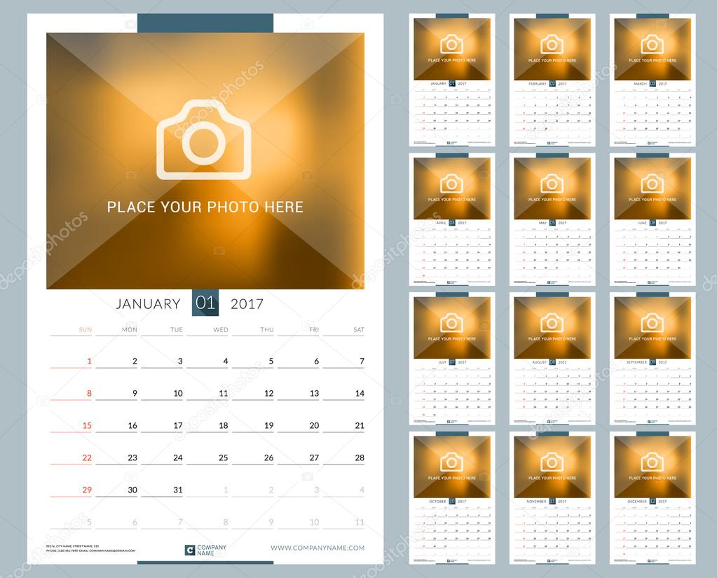 Wall Monthly Calendar For 2017 Year 12 Months Vector