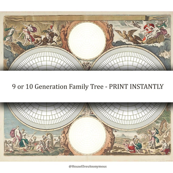 9 Or 10 Generation Family Tree Print Instantly Double Radial Ancestry Chart Historic Antique Old Map Genealogy Charts