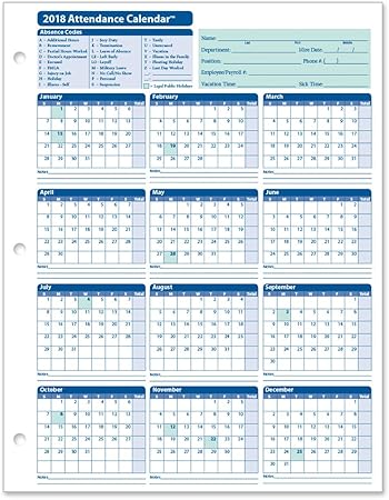 Amazon Com Complyright 2018 Attendance Calendar Card