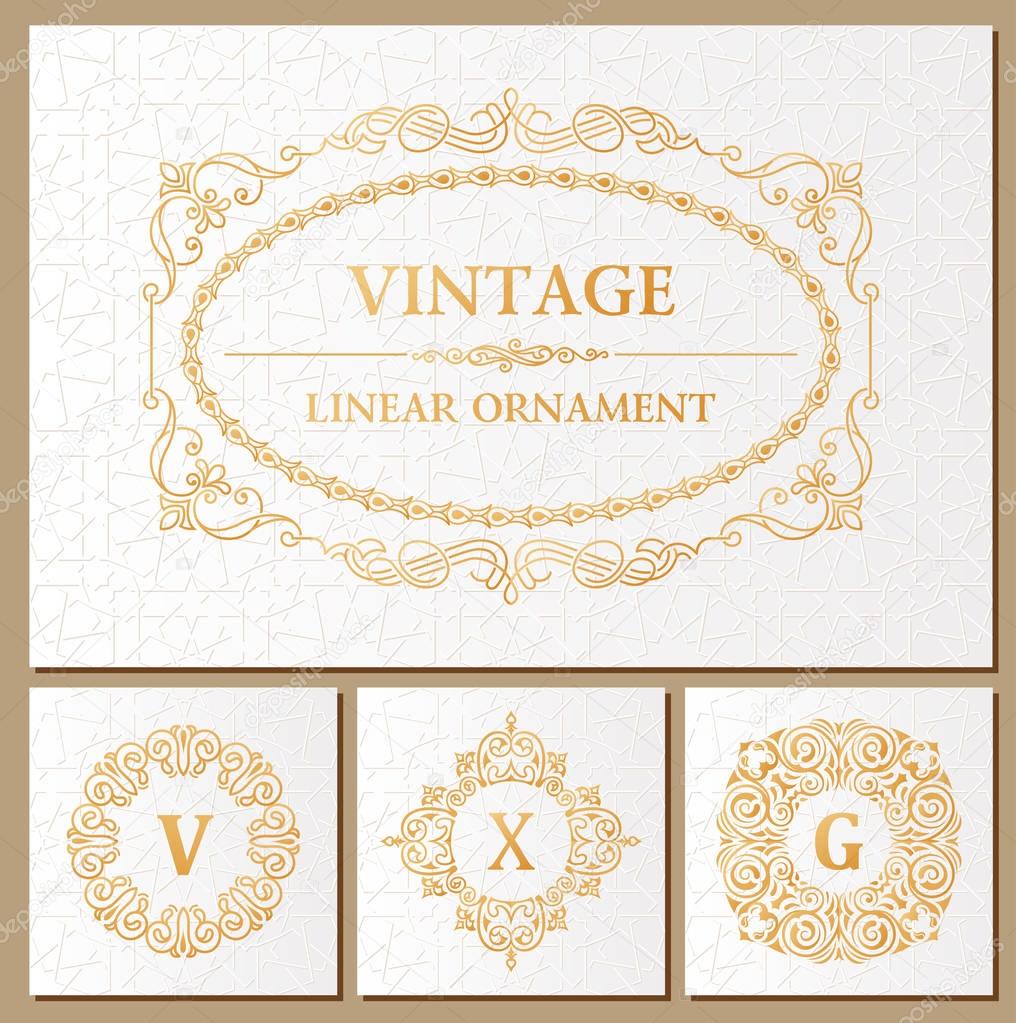 Vintage Set Retro Cards Template Greeting Card Wedding