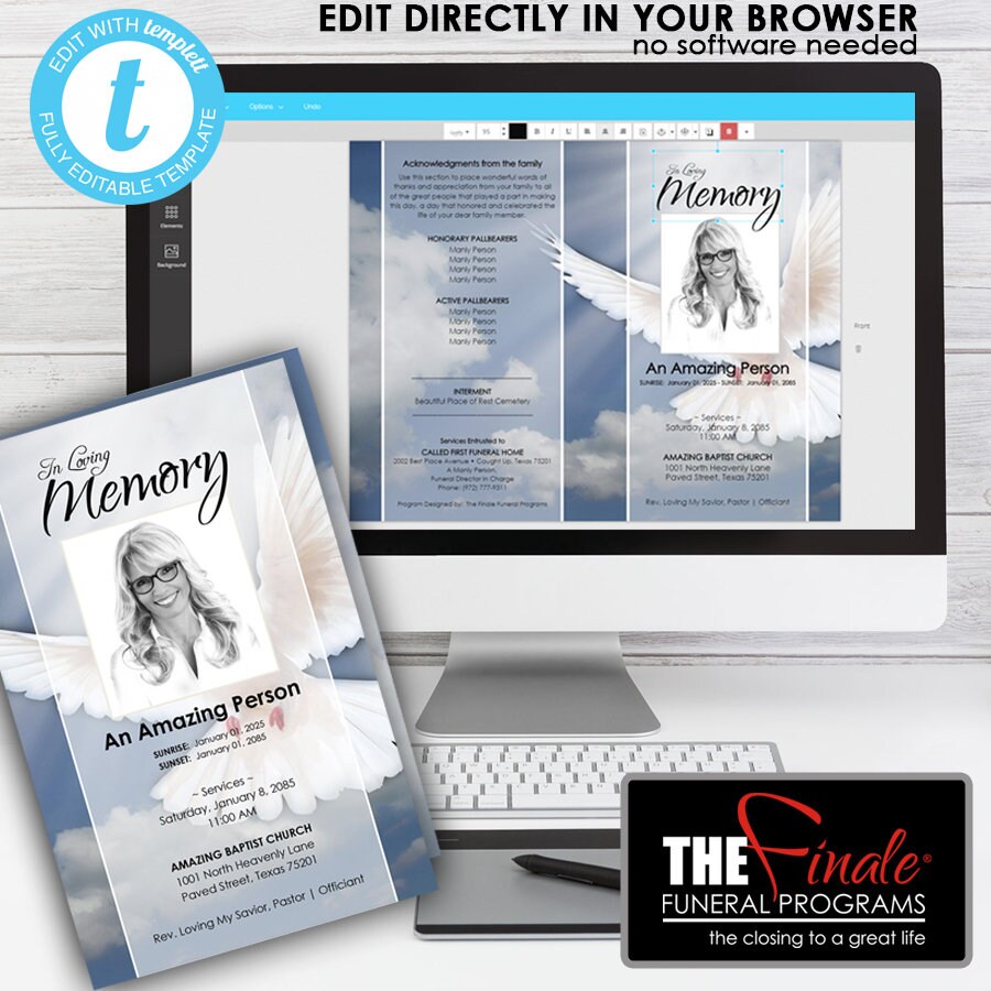 Heavenly Dove Printable Funeral Program Template Edit