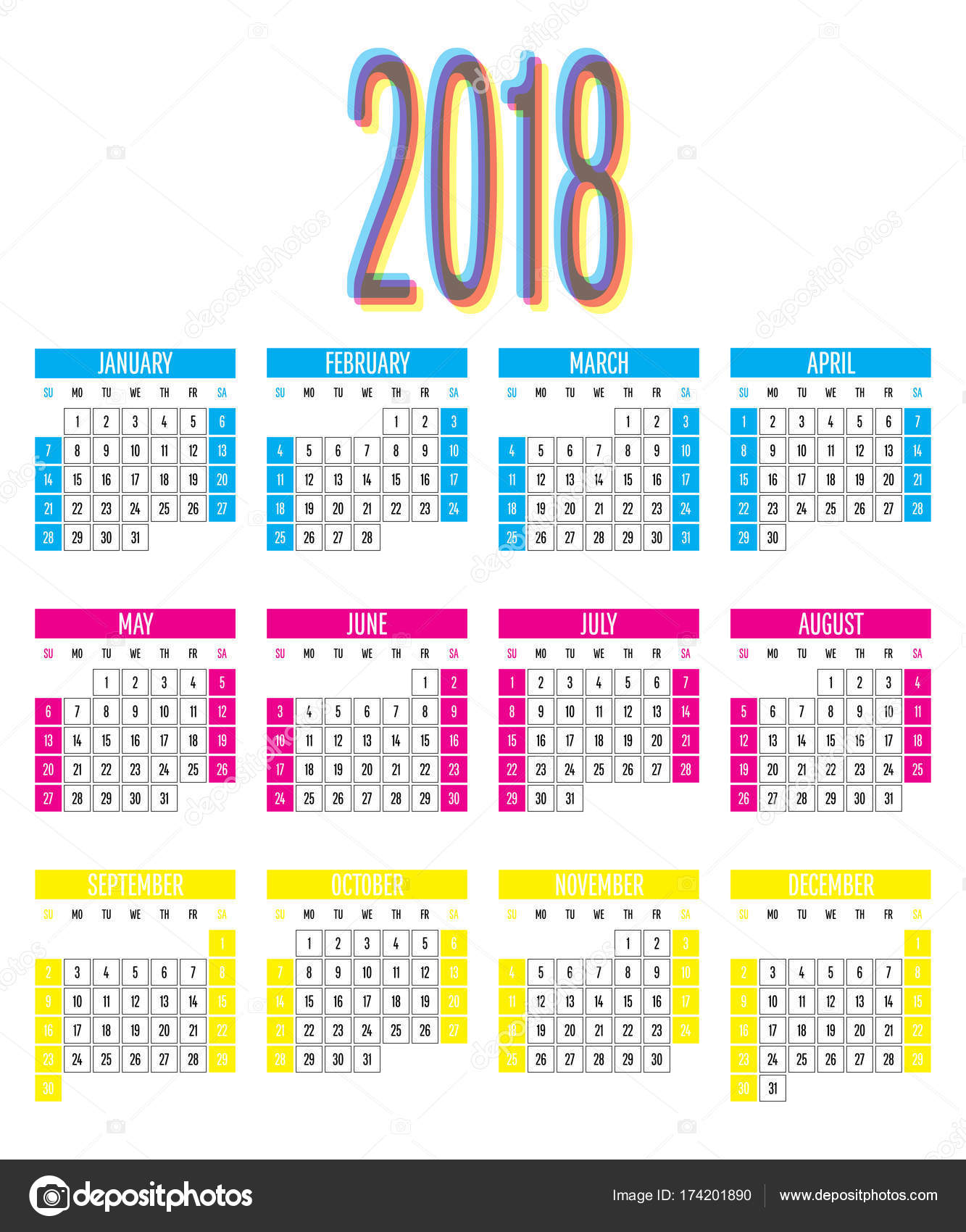 2018 Calendar Design Template Stock Vector C Duntaro Gmail