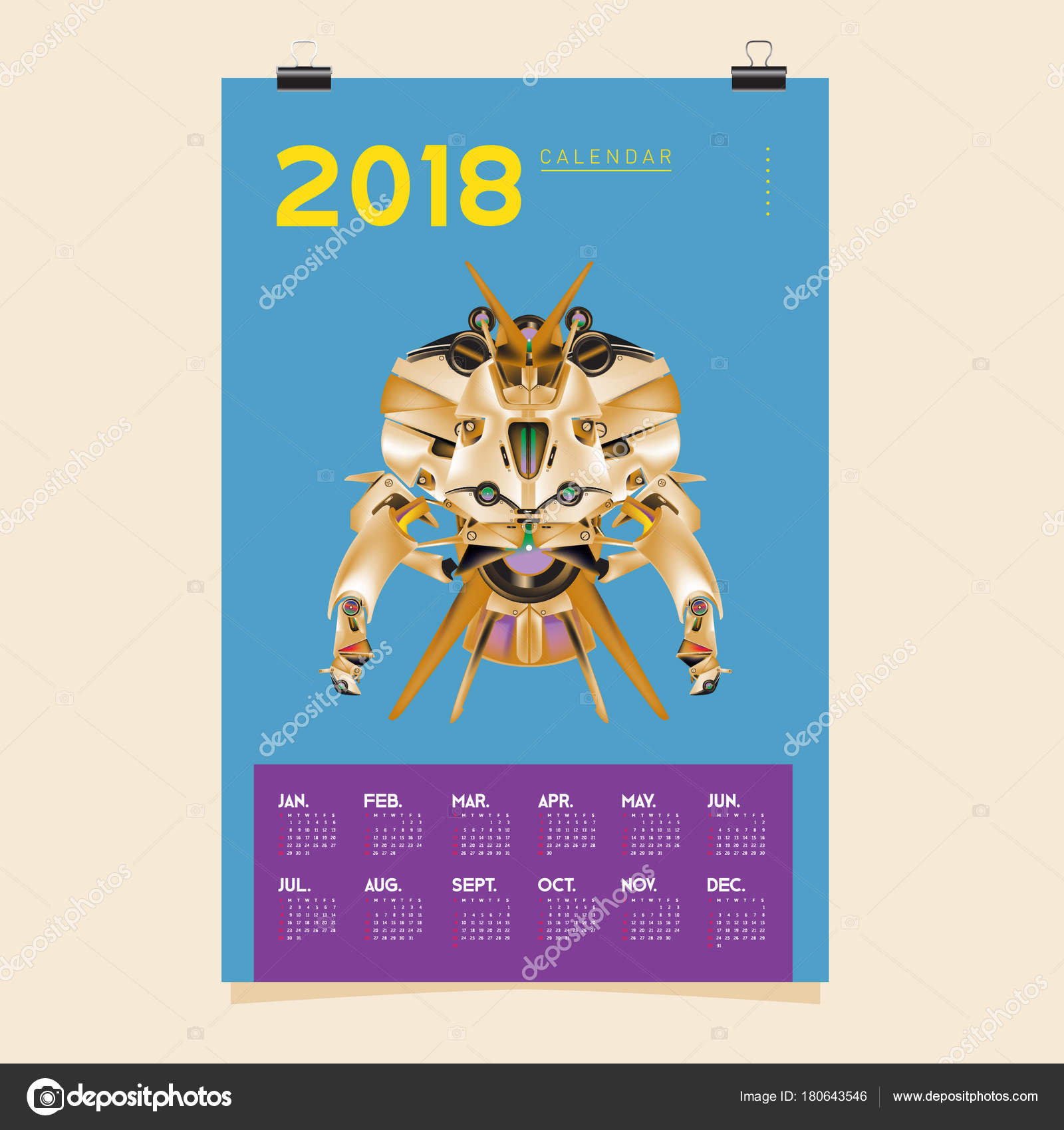 2018 Calendar Design Template Vector Realistic Robot Toys