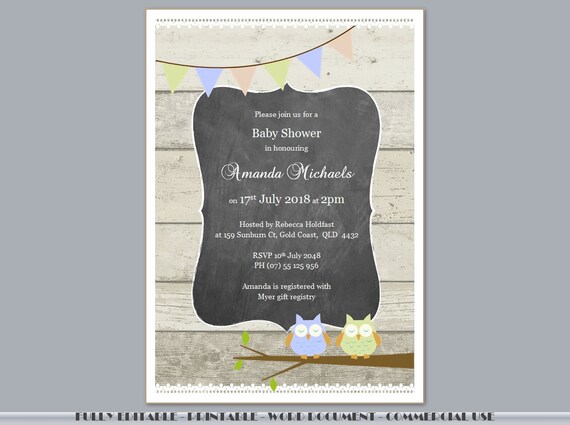 Fully Editable Printable Owls Bunting Baby Boy Birthday Invite Or Baby Shower Invitation Template Download Free Rsvp Wishing Well Card
