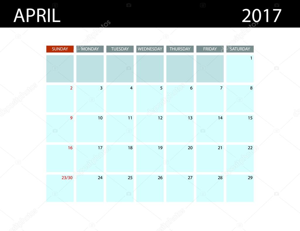 Template Of Calendar For April 2017 Stock Vector Art