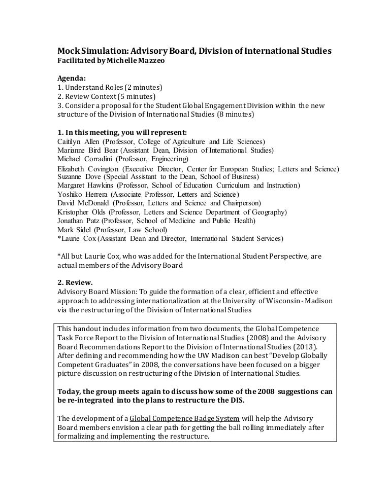 Mock Advisory Board Meeting Agenda Global Competence Badge