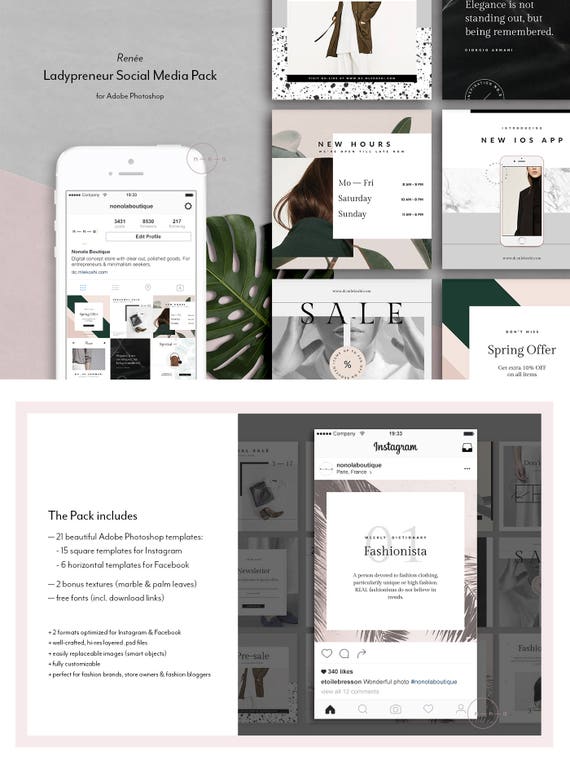 Social Media Kit 21 Psd Instagram Templates Fashion Social Media Pack 4 Fashion Brands Ladypreneurs Facebook Post Templates Renee