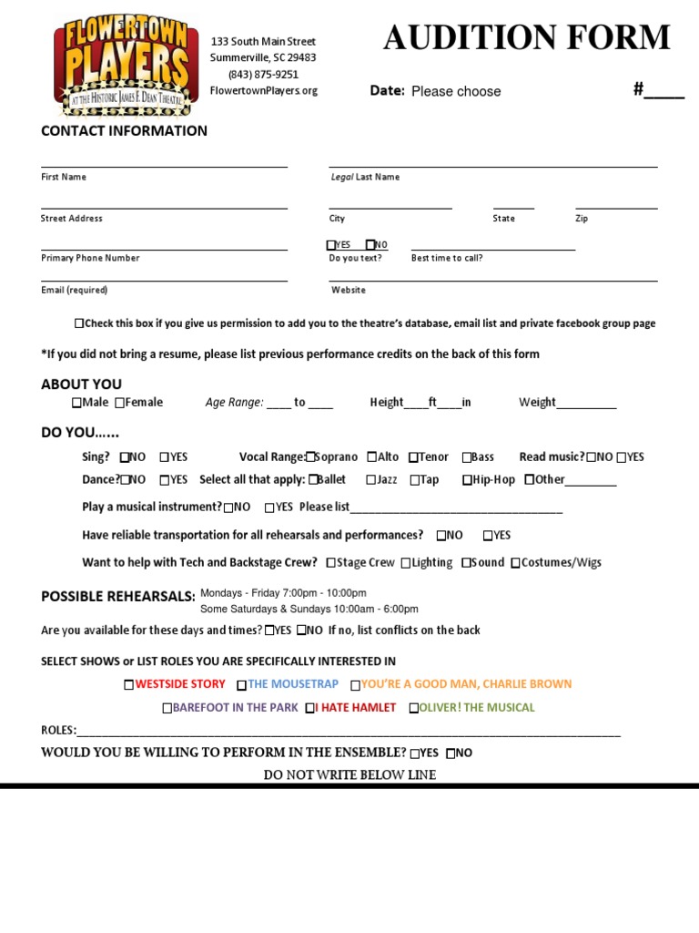 If you are looking for Audition Form Template you have come to the right place. We have many more template about Audition Form Template including template, printable, photos, wallpapers, and more. In these page, we also have variety of images available. Such as pdf, jpg, animated gifs, pic art, logo, black and white, transparent, etc.