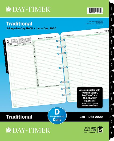 Day Timer 2 Page Per Day Reference Planner Refill Folio Size