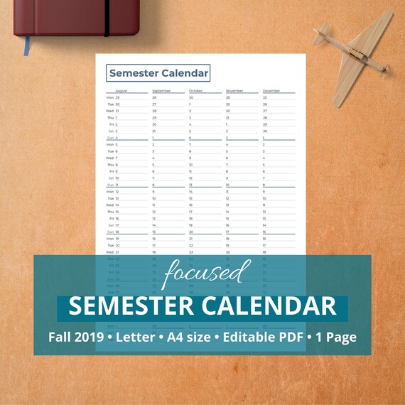 Fall 2019 Semester Calendar Printable Aug 2019 Dec 2019 Semester Calendar Template Editable Instant Download Focused