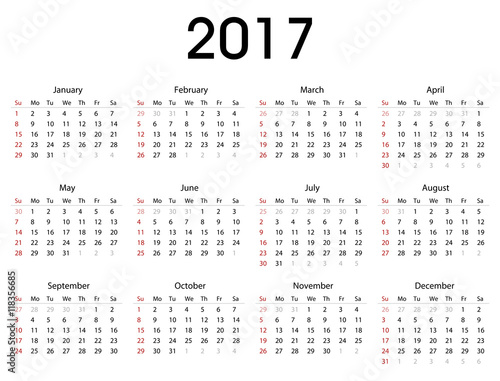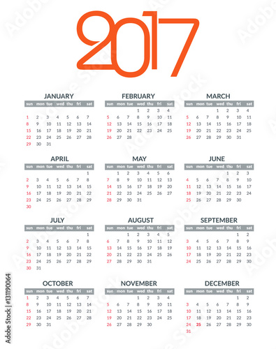 Calendar 2017 Vector Calendar Template Buy This Stock