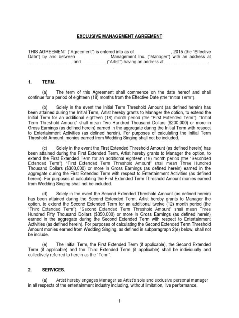Management Agreement Artist Artist Management Contract 2018