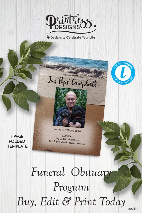 Footprints In The Sand Funeral Program Template Obituary Order Of Service Template Printable Memorial Service Edit In Templett Zfp 21061