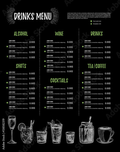 Hand Drawn Vector Illustration Bar Menu Template Of