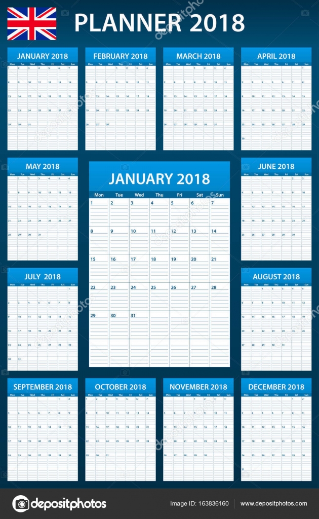 Uk Planner Blank For 2018 English Scheduler Agenda Or