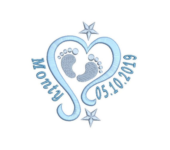 Birth Announcement Template Embroidery Design Baby Birth Stats Baby Footprints Keepsake Stars Boy Machine Embroidery 4 Sizes Ft531 3