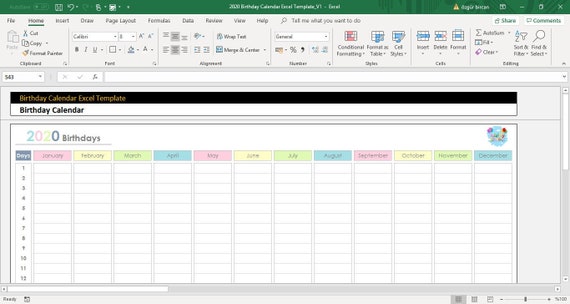 Birthday Calendar Template Excel Tag Birthday Calendar