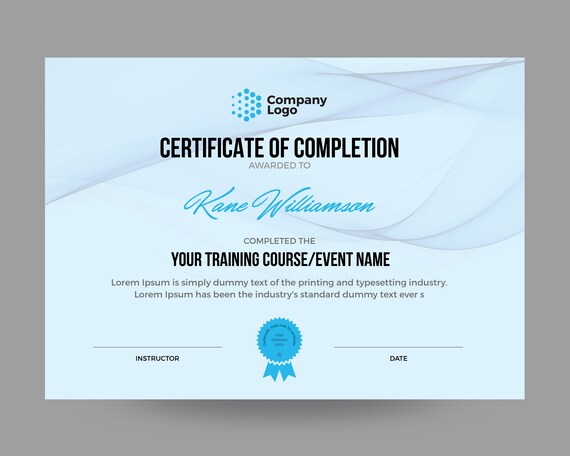 Certificate Template Instant Download Certificate Of Completion Editable Ms Word Docx And Photoshop File Included