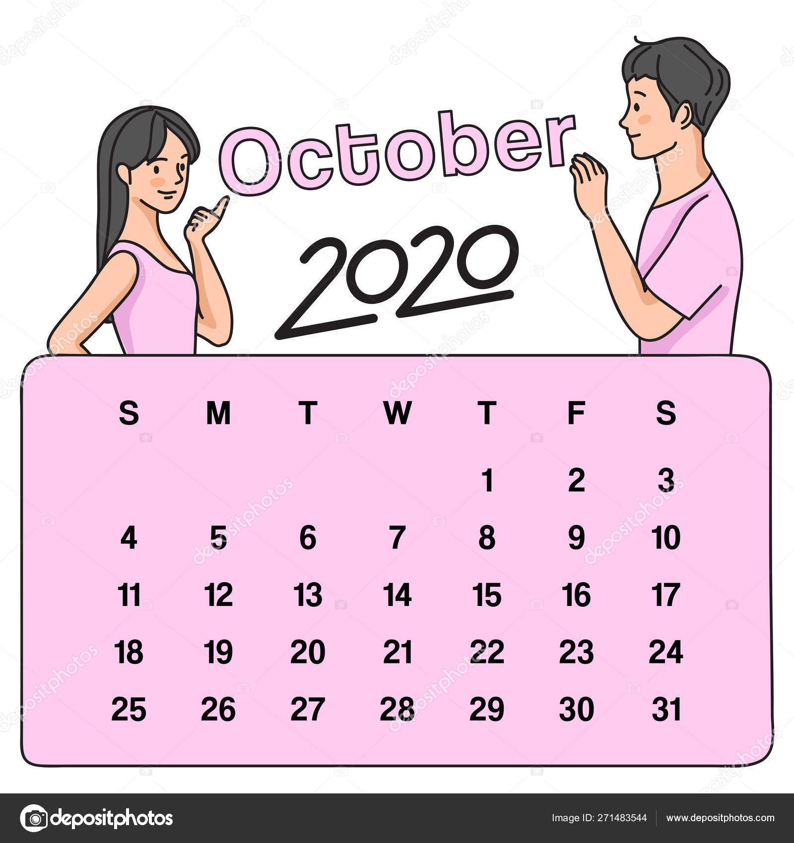 2020 Calendar Template Sweet Couple Hand Drawn Style Vector