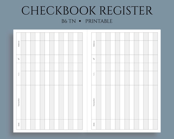 Checkbook Transaction Register Printable Planner Inserts Budgeting Finance Tracker Check Register B6 Tn No 5 5 X 7 Pdf Download