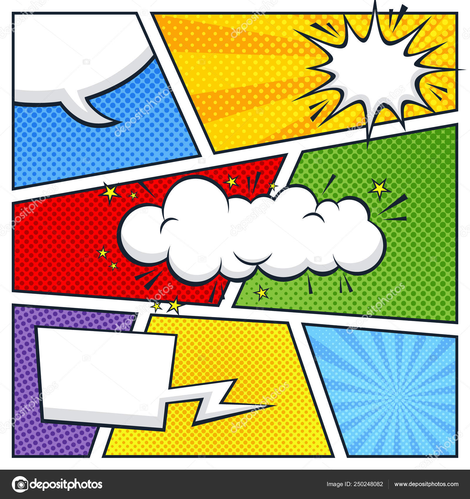 Comics Template Vector Retro Comic Book Speech Bubbles