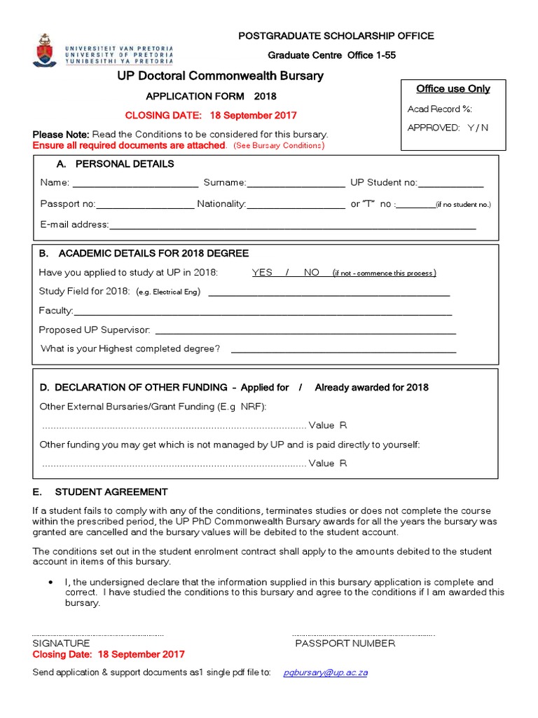 16 18 Bursary Scheme Application Form Pdf Boston College