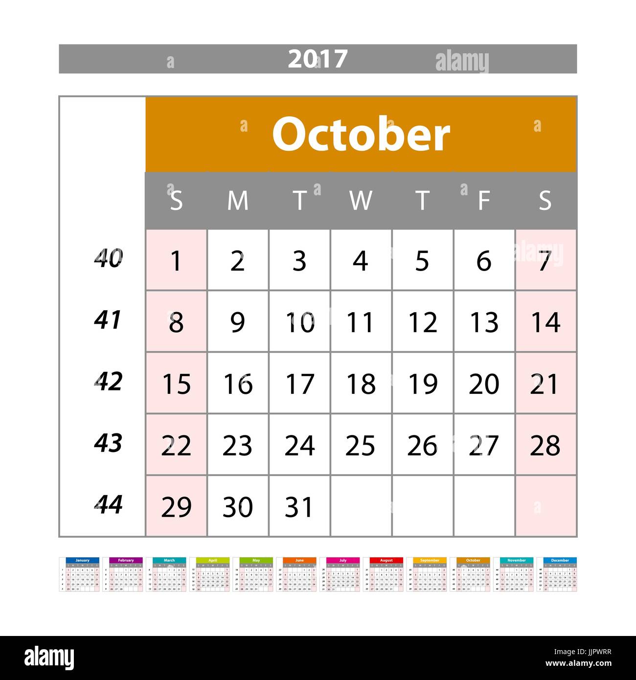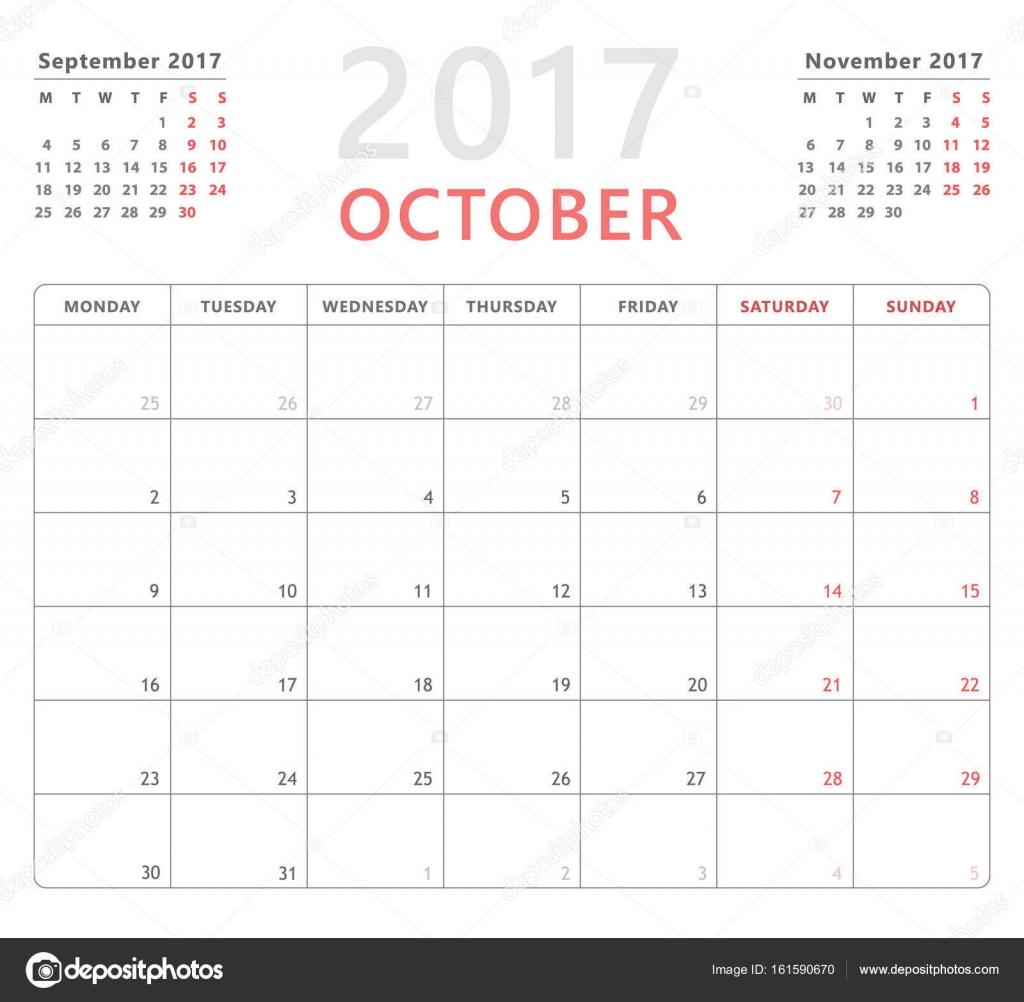 Calendar October 2017 Template Stock Vector C Esbeauda