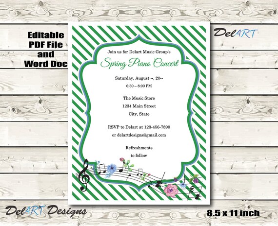 Music Recital Invitation Editable Pdf File And Word Doc Instant Download 8 5 X 11 Inch File Piano Orchestra Concert Spring Flowers