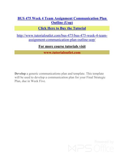 Bus 475 Week 4 Team Assignment Communication Plan Outline