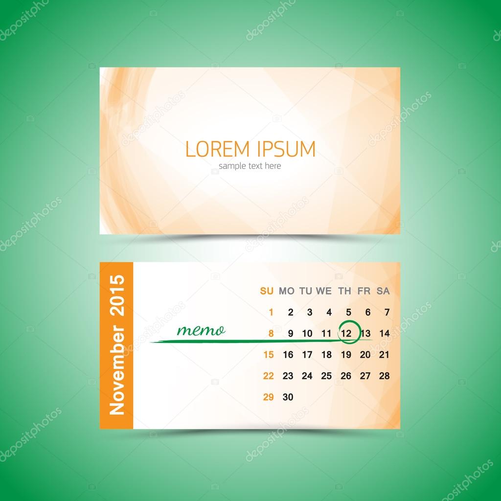 Business Card Calendar Template 2015 November Stock