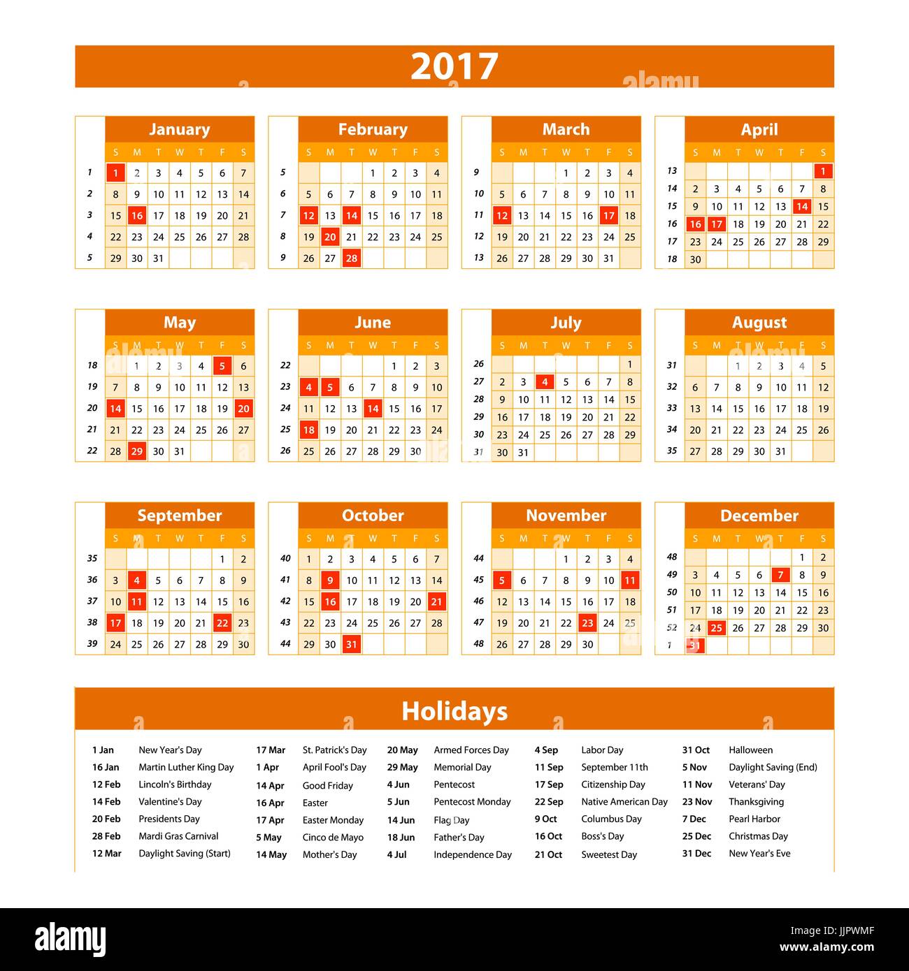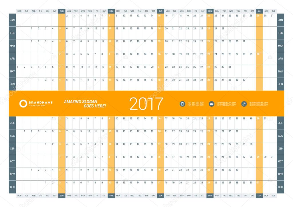 Yearly Wall Calendar Planner Template For 2017 Stock Vector