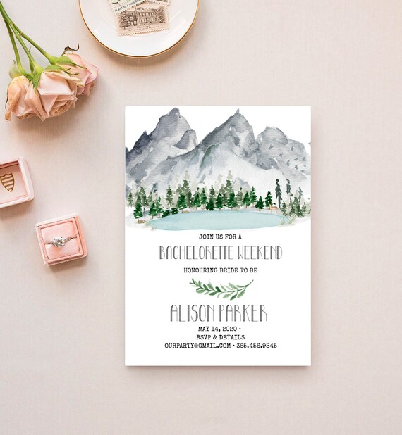 Mountain Retreat Bachelorette Weekend Invitation Itinerary Template Cabin Camping Lake Party Instant Download Editable Text 9917