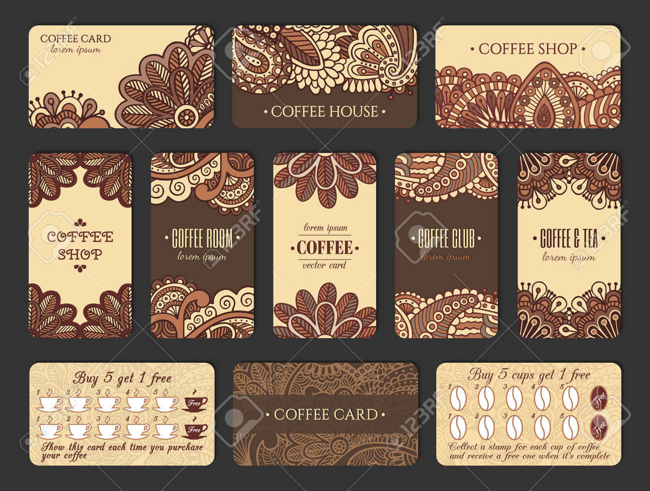 Coffee Card Design Set In Indian Style Vertical And Horizontal