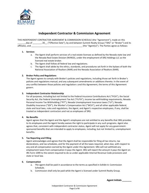 Nevada Ica Commission Agreement Summit Realty Group