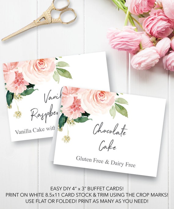 Buffet Food Signs Printable Food Labels Tented Cards Food Stations Editable Food Cards Instant Download Airy Blush