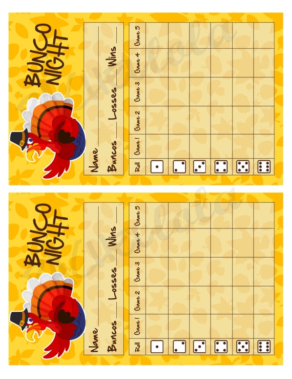 Turkey Thanksgiving Bunco Score Card Score Sheet Bunko Party Scorecard Bunco Theme Group Printable Template Instant Digital Download