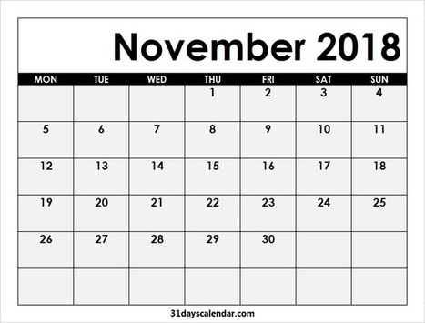 Nov 2018 Calendar Template Excel In 2018 Calendar Scoop It
