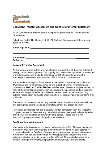 Copyright Transfer Agreement And Conflict Of Interest Statement