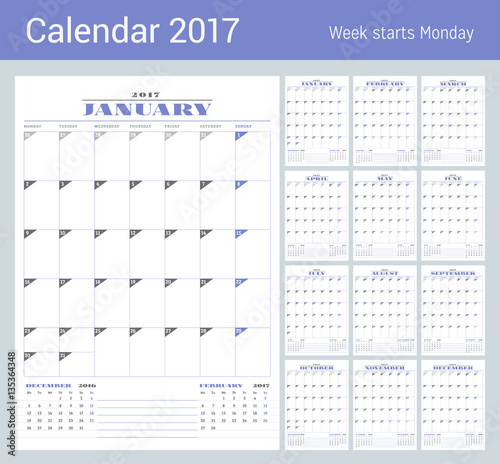 Calendar Template For 2017 Year Stock Vector Colourbox