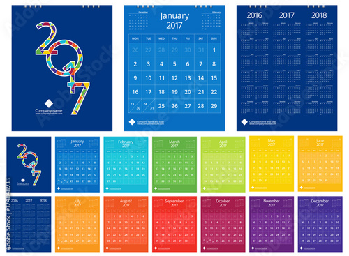 2017 Calendar New Year 12 Months Set With Cover Design Front