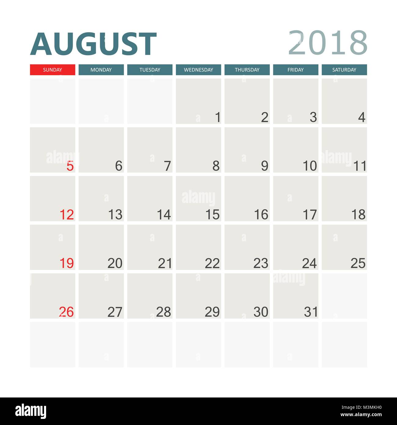 August 2018 Calendar Calendar Planner Design Template Week