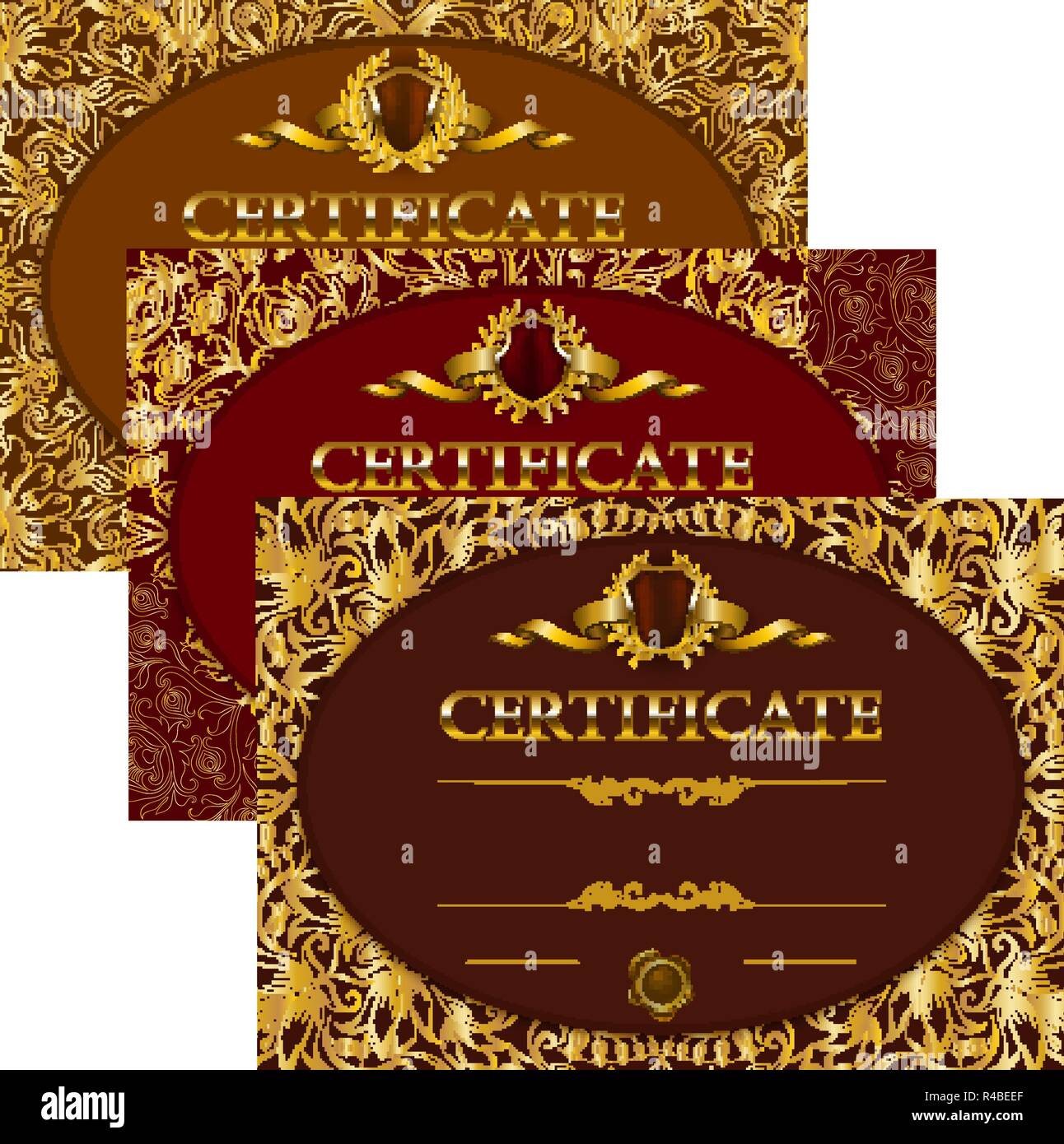 Set Of Elegant Templates Of Diploma With Decoration Of Lace
