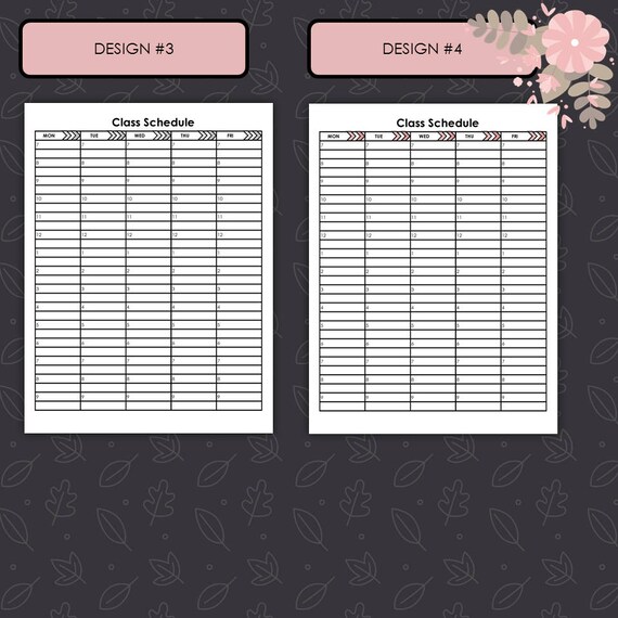 Class Schedule Student Schedule Classroom Template Printable Class Schedule College Planner Student Planner Printable Student Planner