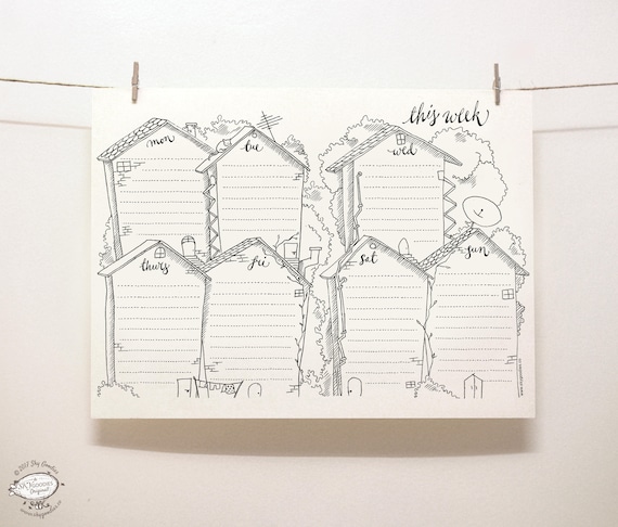 Doodle Perpetual Weekly Planner Cottages Organizer Printable Letter Size Pdf Template Unique Creative Artistic Management Reminder