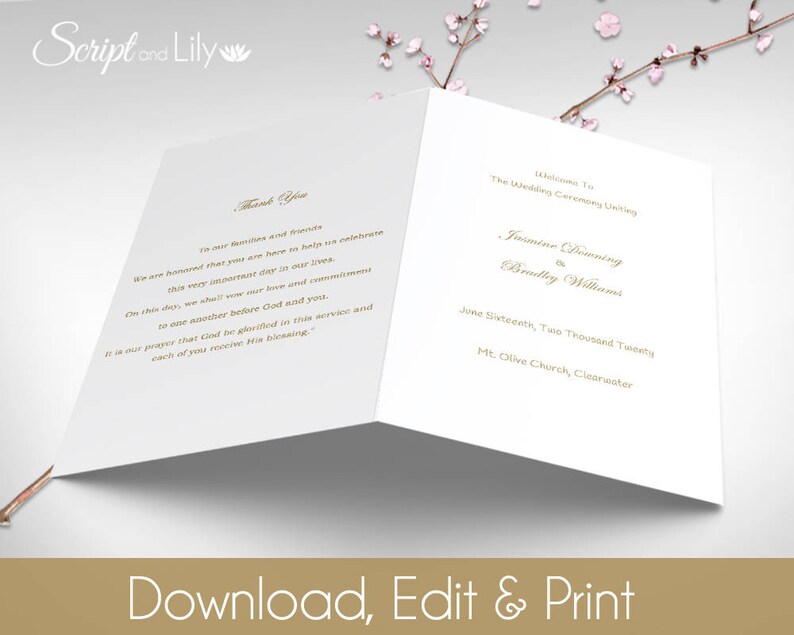 Printable Catholic Wedding Program Editable Text Diy Plain Gold Free Color Changes Word Or Pages Pc Mac Folded 5 75 X8 5