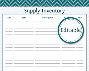 Supply Inventory Editable Printable Sheet Digital Download